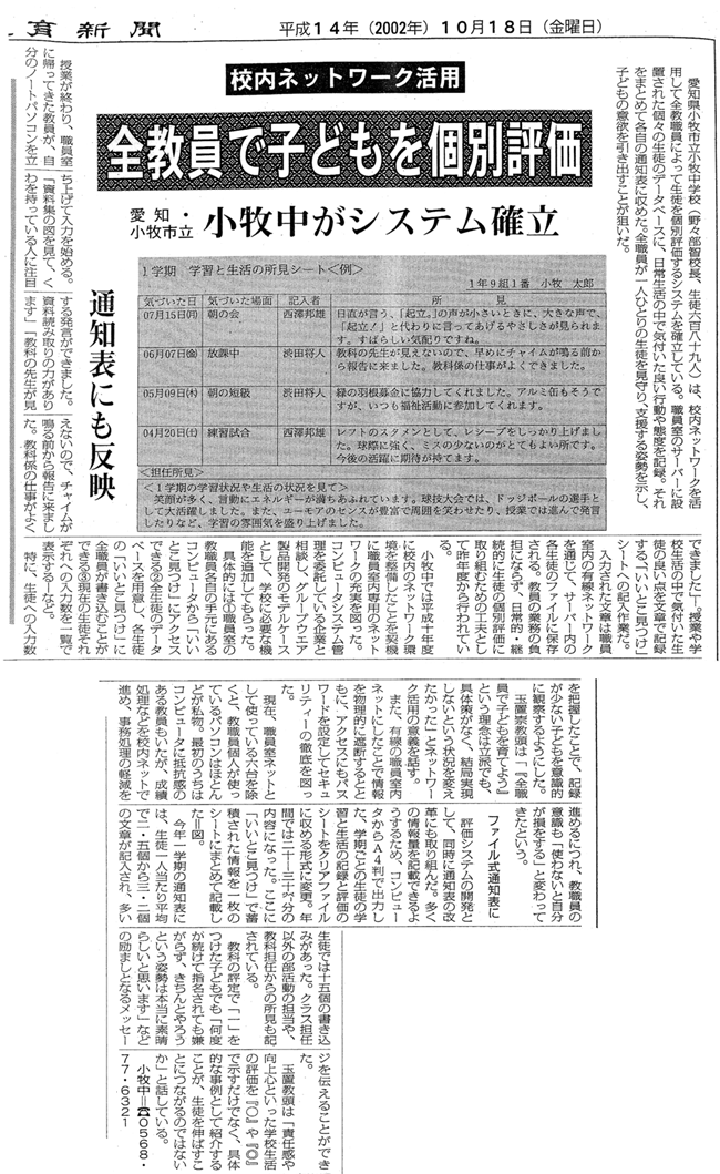 日本教育新聞:全職員で子どもを個別評価