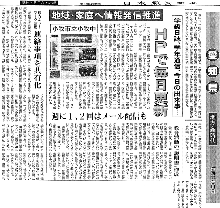 日本教育新聞:地域・家庭へ情報発信推進