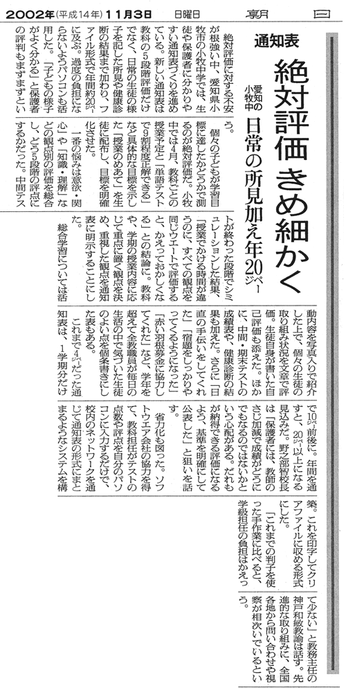 朝日新聞:通知表絶対評価きめ細かく
